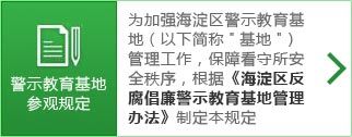 参观警示教育基地需单位统一组织,提前电话联系教育基地办公室,预约参观日期。目前暂不接受个人预约。 日期确定后,须提前至少5个工作日将下载打印的《海淀区反腐倡廉警示教育基地预约申请表》以及参观人员身份证复印件交到教育基地办公室。 确有特殊情况不能如期参观的必须提前2个工作日通知警示教育基地办公室。